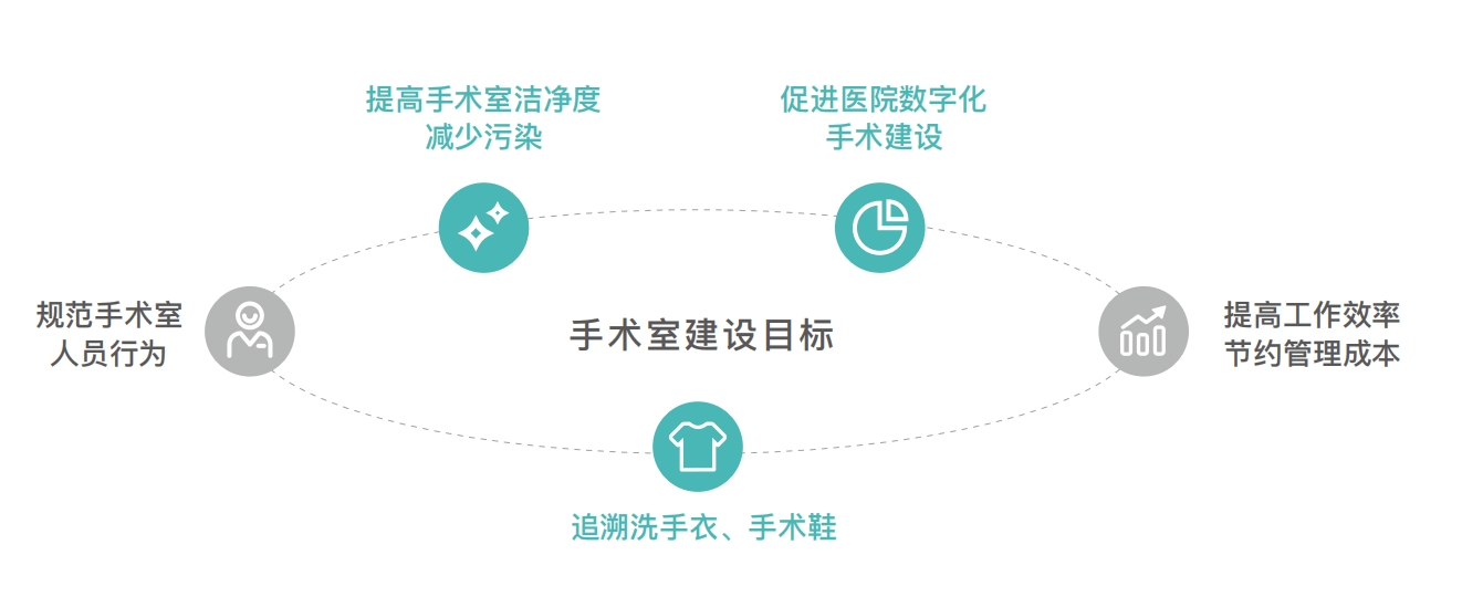 应天海乐手术室行为管理系统基于物联网 RFID 技术、智能算法、数据融合技术,结合智能化设备,实现医护人员手术安全准入管理,洗手衣及手术鞋智能发放、回收及追溯,智能储物管理,异常提醒等功能,通过各个工作节点的控制和管理,解决传统模式下的洗手衣及手术鞋发放效率低下、回收不到位、衣鞋柜分配不科学、人员随意进出及衣鞋使用无法追溯等问题。实现手术室洁净管理、规范手术室医护人员行为、提高手术室工作效率、节约管理成本的目标,确保了手术室安全及高效运营。
